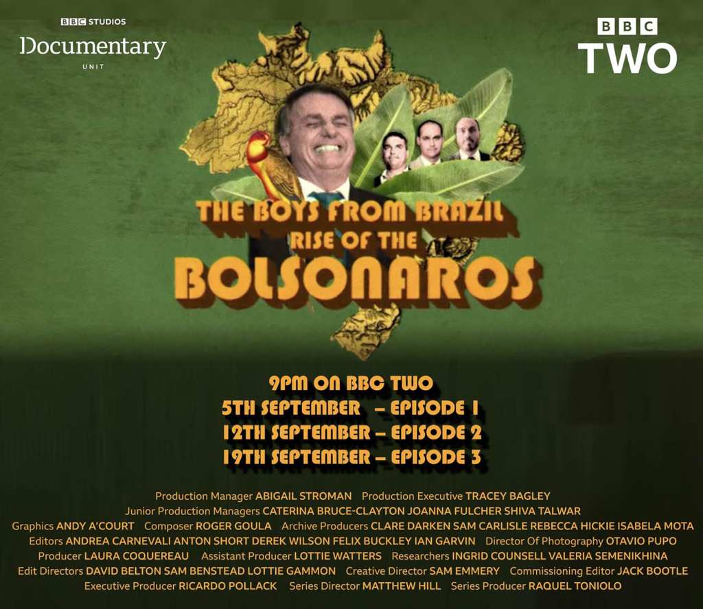The Boys from Brazil – Rise of the Bolsonaros MovieGeekMarch 2, 2022September 21, 2022Documentary Post navigation PreviousNext A three-part documentary about controversial Brazilian leader Jair Bolsonaro. Share this: Click to share on X (Opens in new window) X Click to share on Facebook (Opens in new window) Facebook Like Loading... Related